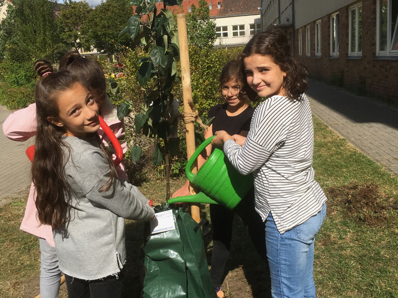 Für die Pflanzaktion 2019 an sieben Schulen, hat aquatechnik hat 40 Treegator-Baumbewässerungssäcke gesponsert.