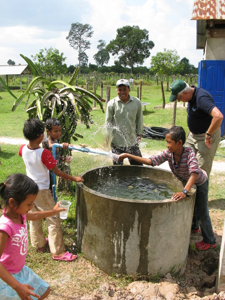 Manfred Mendler fasst zusammen: "Natürlich handelt es sich bei der im Dorfprojekt in der Nähe von Siem Reap installierten Bewässerungsanlage um ein sehr einfaches System. Aber genau das soll es ja auch sein. Zum einen müssen die Bewohner vor Ort die Arbeitsweise der Anlage verstehen, zum anderen sollen die Wartungsarbeiten und die möglichen Fehlerquellen bei der Benutzung so gering wie möglich gehalten werden. Ich denke, wir haben mit der Unterstützung von aquatechnik ein sinnvolles Hilfsprojekt in Kambodscha durchgeführt, das auch nachhaltig wirken wird. Schief gehen kann eigentlich nichts mehr, denn schließlich waren vor der Inbetriebnahme drei Mönche eines benachbartes Klosters im Dorf. Und nachdem sie mit köstlichen Speisen bewirtet wurden, haben sie der neuen Bewässerungsanlage für die Drachenfrüchte den göttlichen Segen erteilt."